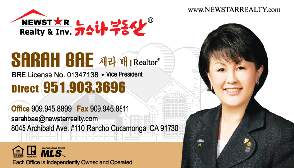 뉴스타 부동산 렌쵸쿠카몽가 오피스금주의 "TOP" 에이젼트 축하드립니다!!! 뉴스타 부동산 렌쵸쿠카몽가 오피스 금주의 "TOP" 에이젼트 Sarah Bae/ 951-903-3696 sarahbae@newstarrealty.com 뉴스타 소식 2022.11.22